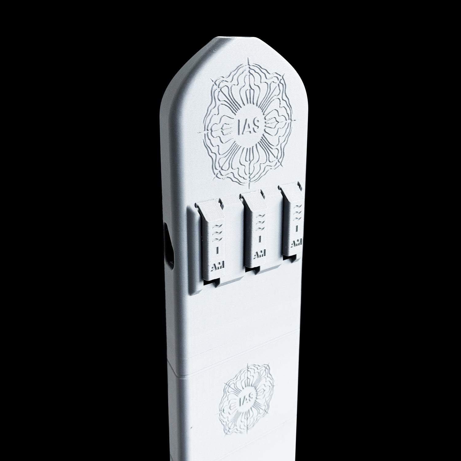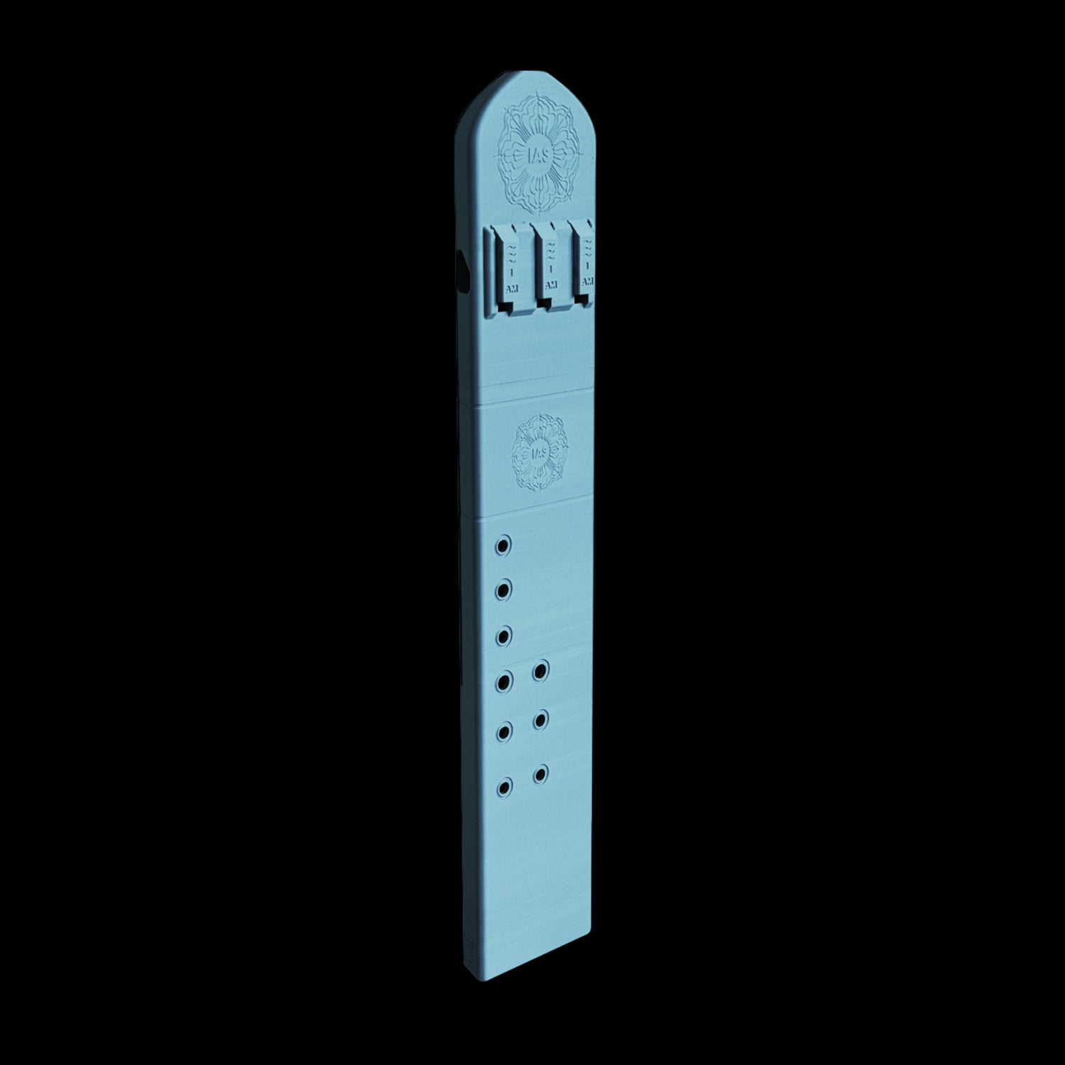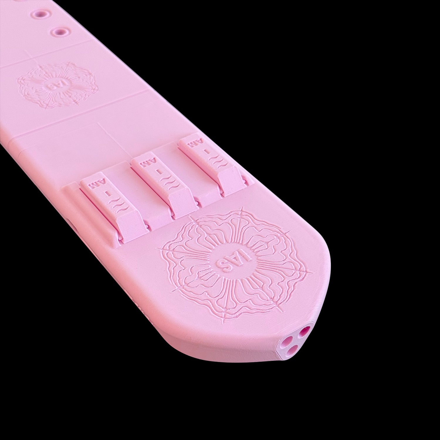 First, notice the "sound board" looking shape we went with this. This allows me to easily walk among the two playable barrels. We also widened the top surface and even customized the airway channels into a triangular configuration, allowing me to now pair the bass drone with either of the other barrels for more dynamic sounds and flexibility.